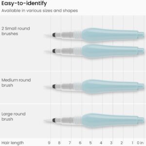 Set of 4 water brush pens for watercolor painting Blend, glaze, and paint with watercolors and water-soluble colored pencils Wide, flat barrel acts as a reservoir for clean water Control water flow with easy-to-squeeze transparent barrel Assorted tip sizes for a variety of strokes Designed and created by artists, accessible for all ages and levels
