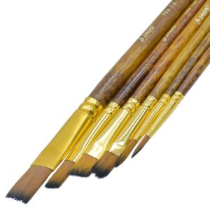 1. Pack contains 5 Liner Brushes. 2. Perfectly Balanced & Polished Wooden Handle. 3. Ideal for acrylic, watercolor, and oil paints. 4. Synthetic Hair Long handle Wooden Paint Brush with a smooth finish. 5. Round shape for strokes and details, Flat shape for stroke and coverage.