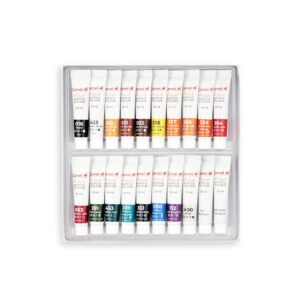 About this item Pack includes 18 tubes of acrylic colors 20ml each along with gel medium tube of 20ml and acrylic retarder medium tube of 20ml Shades in pack – Prussian blue, cobalt blue hue, viridian hue, permanent yellow deep, scarlet lake, titanium white, black, lemon yellow, crimson lake, burnt sienna, yellow ochre, sap green,…