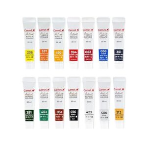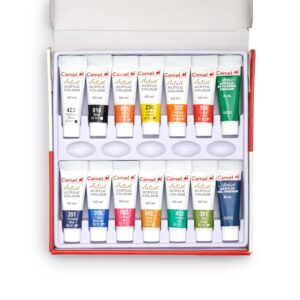 About this item Can be used directly from the tube or mixed with acrylic medium or with water Adhere to a great variety of surface like canvas, wood and earthenware Pack of: Artist acrylic color box 40ml x 12 shades, 40ml gel medium and 40ml retarder medium Shades: lemon yellow, permanent yellow deep, scarlet lake,…