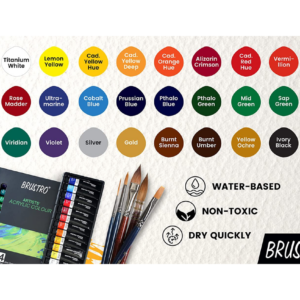 Brustro acrylics are colours that can be used to paint on all conventional art surfaces such as paper, cardboard, canvasses etc. These soft bodied colours can be used straight from the tube as they wet easily on to the surface or they can be thinned with water. All the colours are inter-mixable giving endless colour…