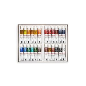 About this item Set of 24 assorted shades in 5ml tube ideal for professional artists, serious hobbyists, fine art students, design students, vocational training students Shades in Pack: Sap green, raw umber, emerald green, burnt sienna, cobalt blue hue, raw sienna, Prussian blue, ivory black, light red, Chinese white, crimson lake, scarlet lake, vermilion hue,…
