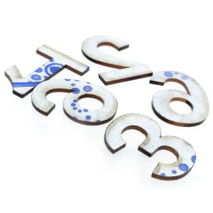 1. Approximate Size: 2.5×2 cm. 2. Approximate Thickness: 1 mm. 3. Material: Acrylic. 4. Pack contains: 5 Numbers. 1,2,3,6 and 9.5. Use our clock making supplies and make your dream clock for your Home or Office.