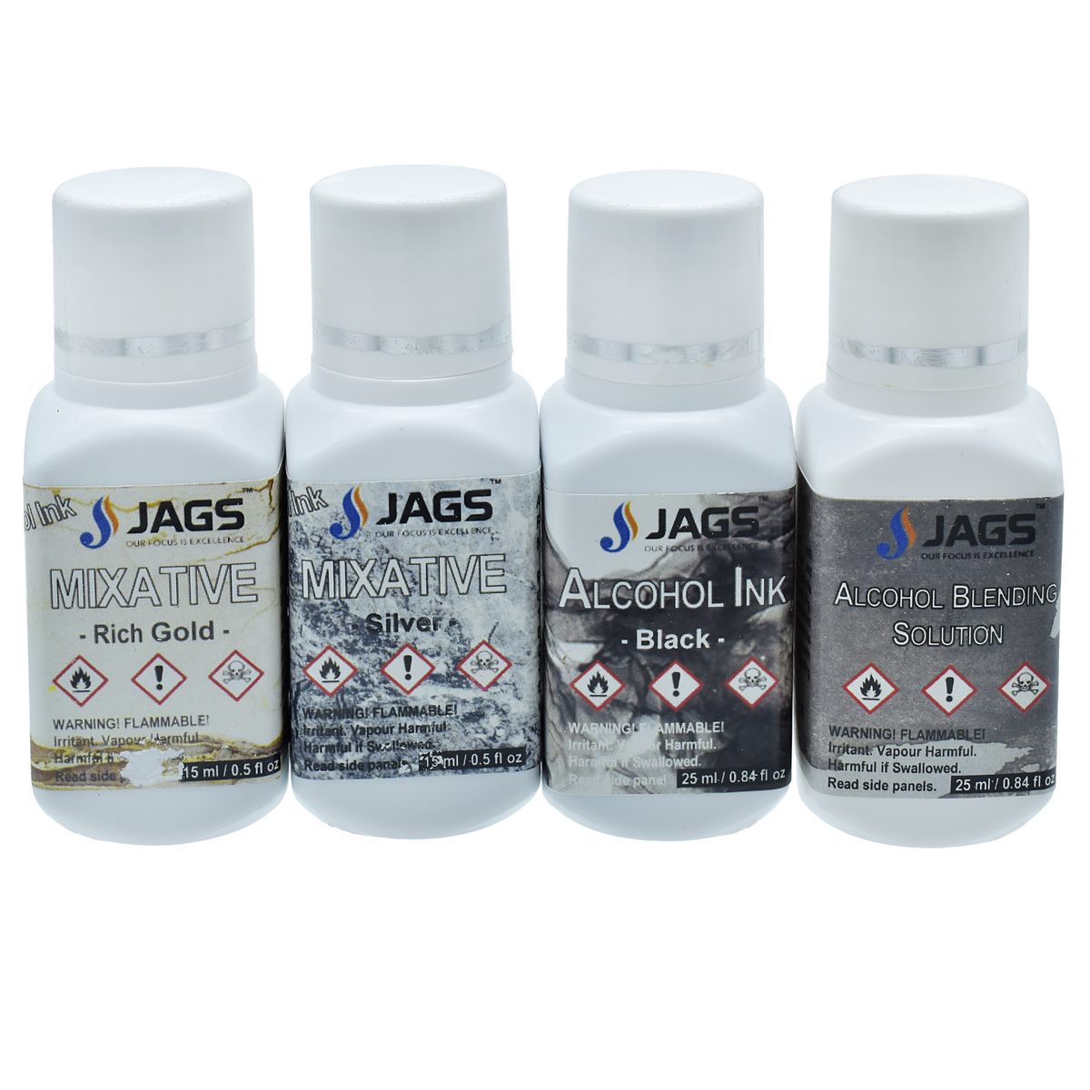 1. Material: Alcohol ink Mixative, Bottle contains 25ml of Mixative. Rich Gold, Silver, Black & Blending Solution