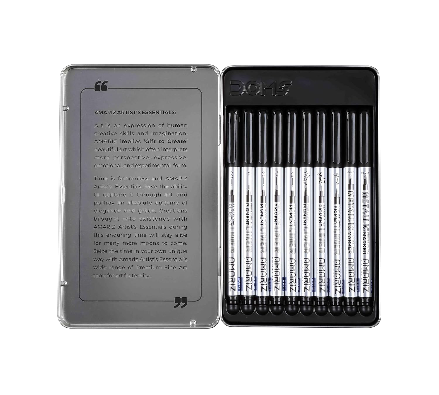 AMARIZ DOMS Pigment Fine Point Liner & Marker Set Of 10, Black