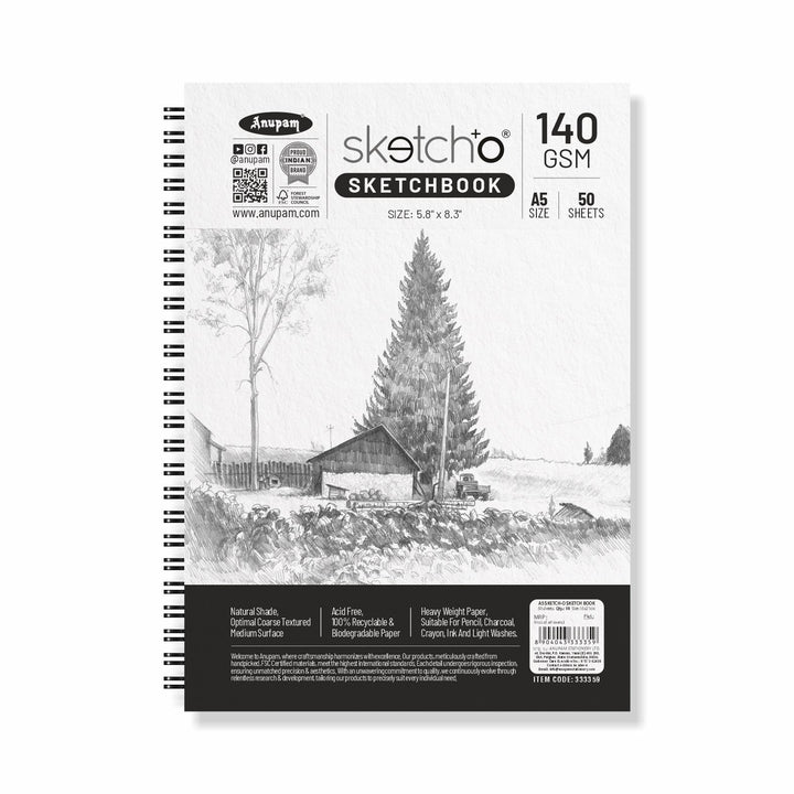 Anupam Sketcho Sketching and Drawing Sketchbook Soft Bound Cartridge Paper 140gsm Wireo Book