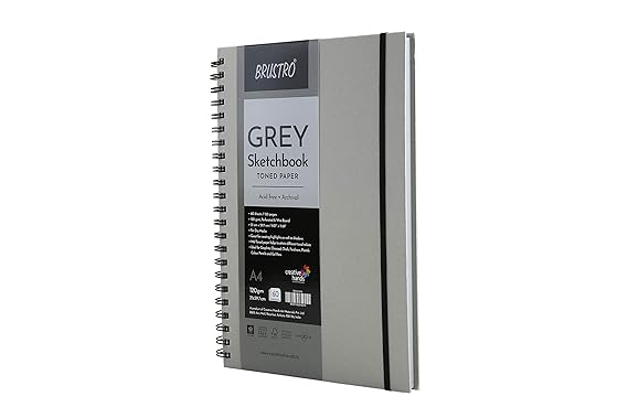 BRUSTRO Toned Paper – Grey Sketchbook | A4, 120 GSM | 60 Sheets/120 Pages