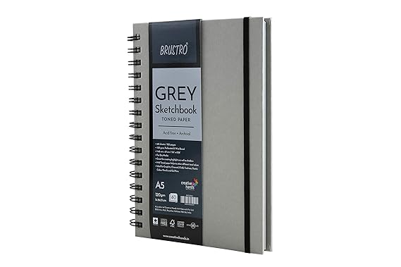 BRUSTRO Toned Paper – Grey Sketchbook | A5, 120 GSM | 60 Sheets/120 Pages |Wiro Bound