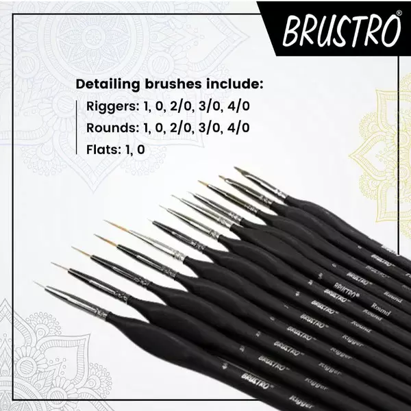 The BRUSTRO Watercolour & Acrylic Miniature Brush Set featuring synthetic hair, ideal for watercolour, gouache, and acrylic painting. This Pack of 12 brushes is designed for artists who require fine detail and precision in their work. The high-quality synthetic bristles are soft yet durable, ensuring smooth application and excellent color retention. Perfect for painting intricate designs, delicate highlights, or tiny details, these brushes offer optimal control and versatility. Whether you’re working on small-scale art, miniatures, or detailed illustrations, these brushes provide the precision you need. The BRUSTRO Miniature Brushes come with sturdy wooden handles, providing a comfortable grip and ease of use. They are suitable for a wide range of mediums, including watercolours, gouache, and acrylics, making them a must-have for artists working in various techniques. The compact size and variety of shapes and sizes in this Pack of 12 ensure that you have the right tool for every detailed task. Whether you’re an experienced artist or just beginning, these brushes will help you achieve fine, accurate strokes, and bring your creative vision to life with every brushstroke.