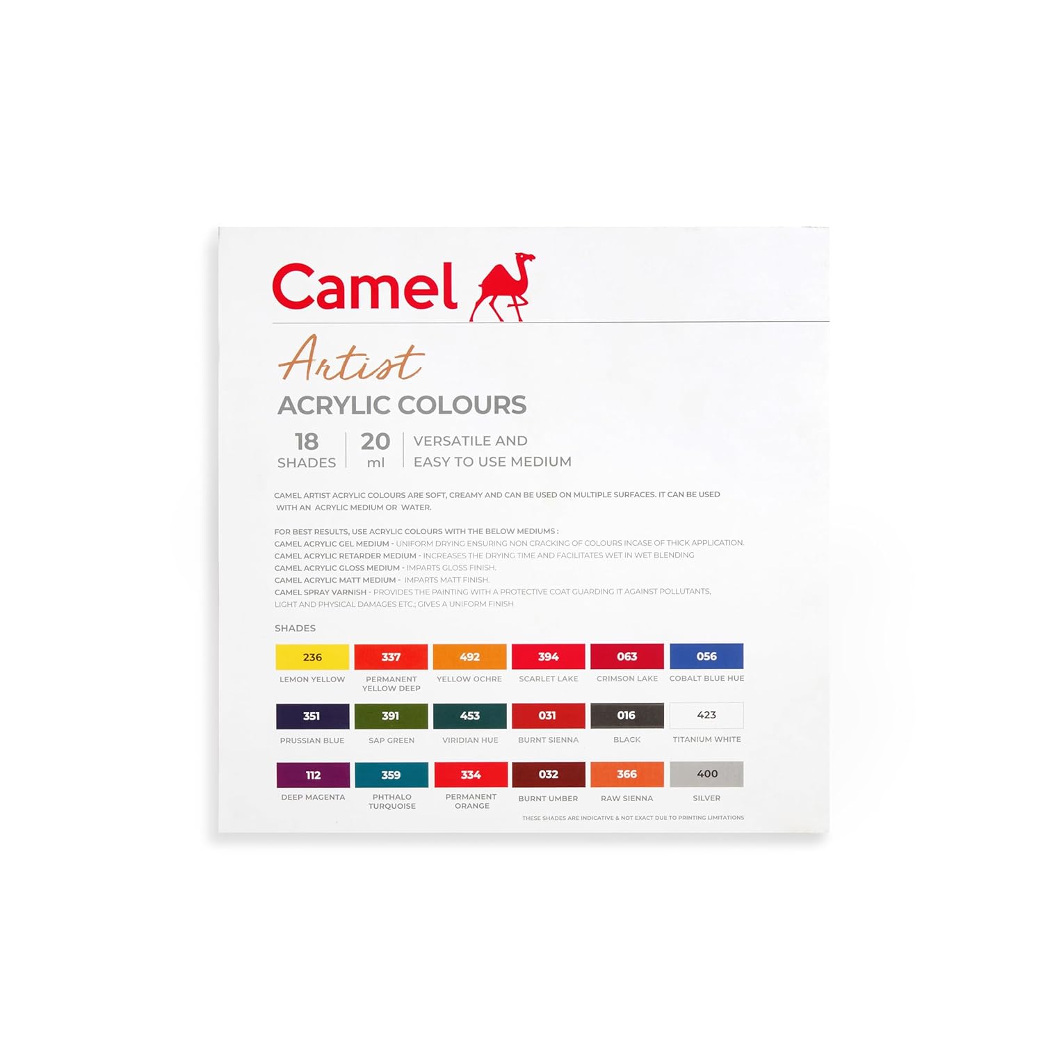 Camel Artist Acrylic colors – 18 Shades, 20ml, Multicolor
