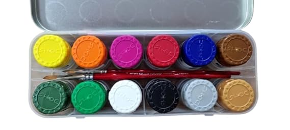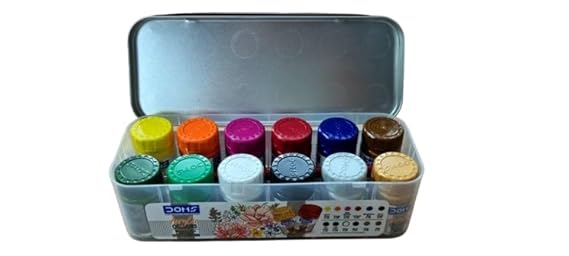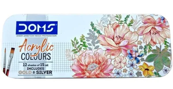 Doms Acrylic Colours 12 Shades Kit15ml | Includes Gold and Silver with 2 Brushes Included in Box | DIY Paint for Canvas Wood Metal Leather Rich Pigment Paint |