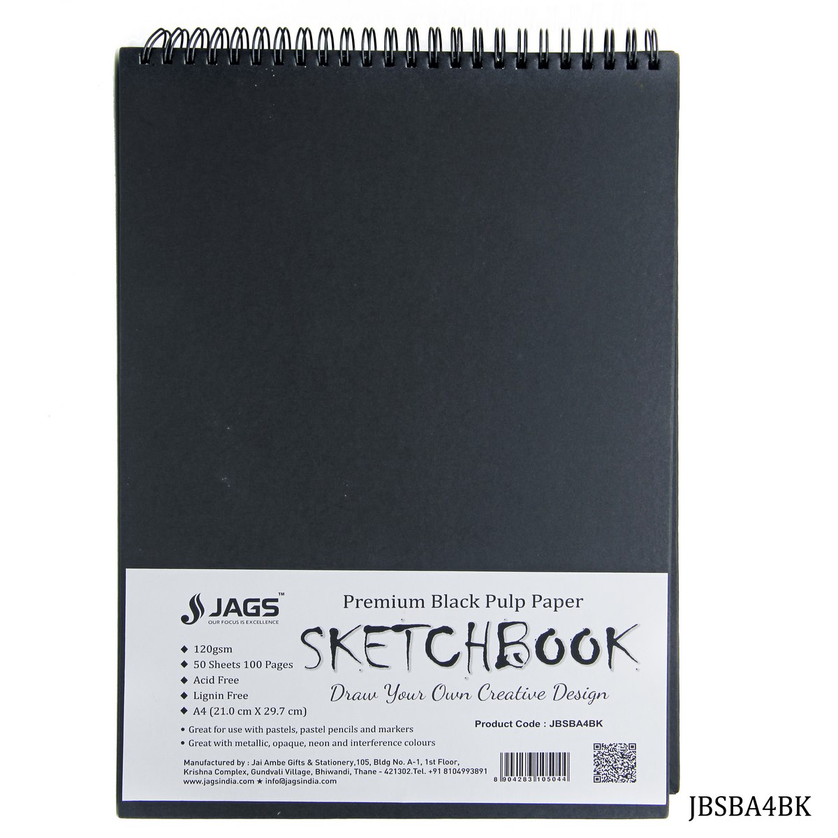 Jags Black Sketch Book A4 100Pgs 120Gsm