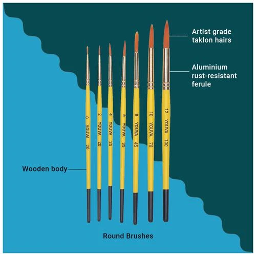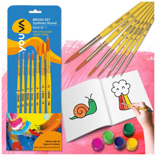 Navneet Youva Synthetic Round Brush Set – For Students & Artists, Brush No. 0, 2, 4, 6, 8, 10 & 12, 7 pcs