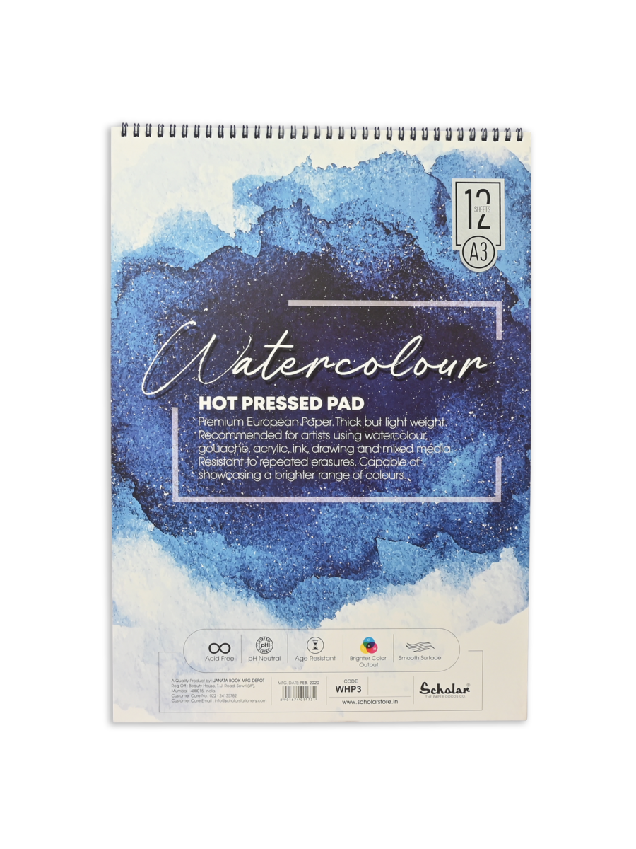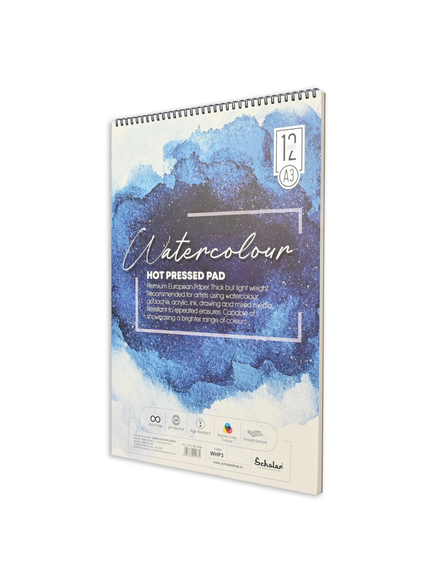 Scholar 300 Gsm Watercolour Hot Pressed Paper Pads – Wire Bound (Smooth Surface) (12 Sheets) (WHP)