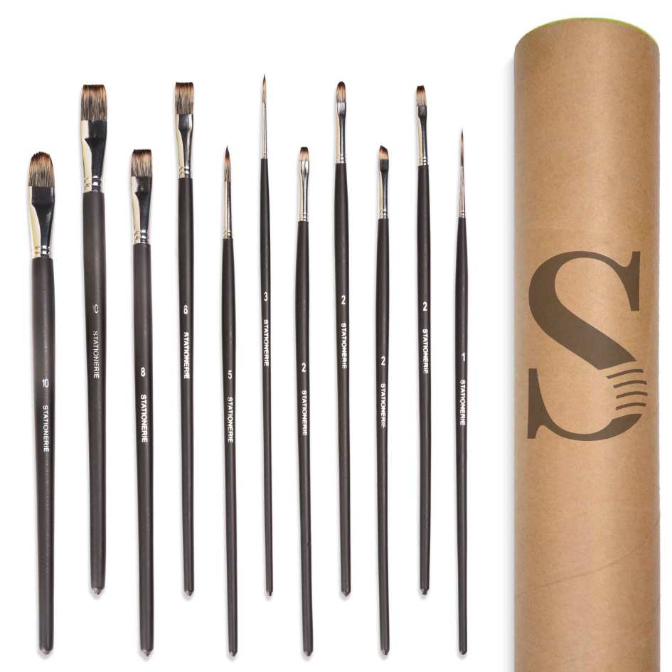 Introducing #stationerieoriginals Stationerie Mix Set Of 11 Long Handle (3rd Gen Aquasync Imitation Vegan Bristle) Artists’ Long Handle Set Of 11 For Oil, Water & Acrylic