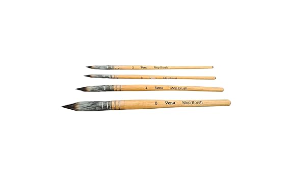 Venu Art Synthetic Hair Mop Brush for Painting, Watercolour and Wooden Paintbrush Set Paint Brushes for Artists, Set of 4