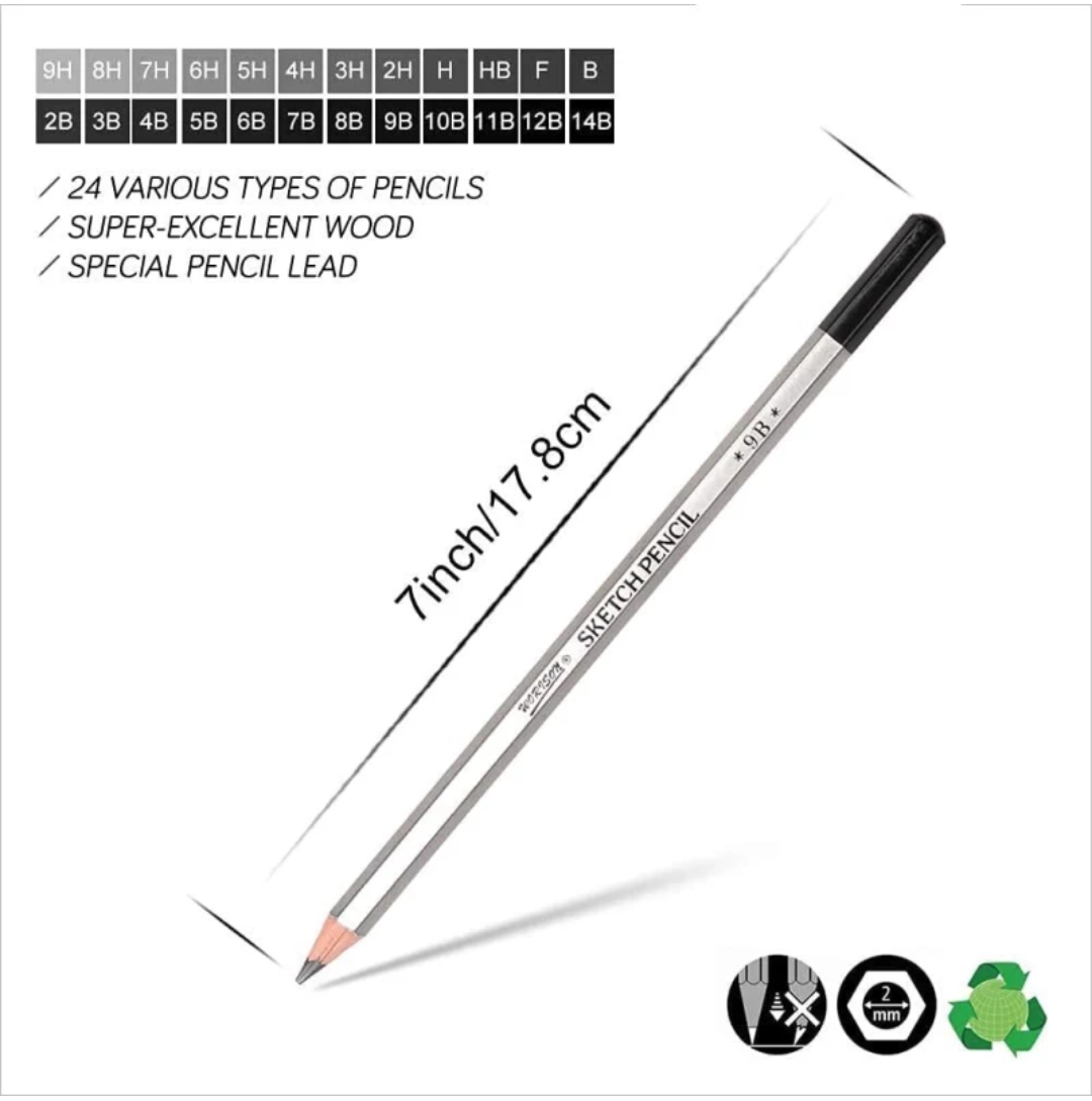 Grade: 6H, 4H, 2H, HB, B 2B, 3B, 4B, 5B, 6B, 8B, 10B